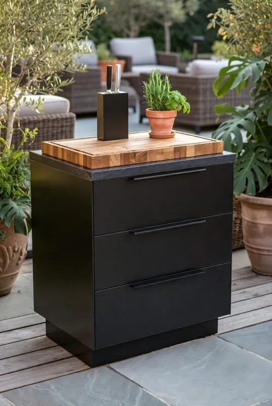 Çoğu dış mekan mutfağı bir yere sabitlenir ve orada kalır. Sonra bahçeyi yeniden düzenlersiniz, pergola değişir, oturma alanı kayar — mutfak yerinde çakılı durur.
