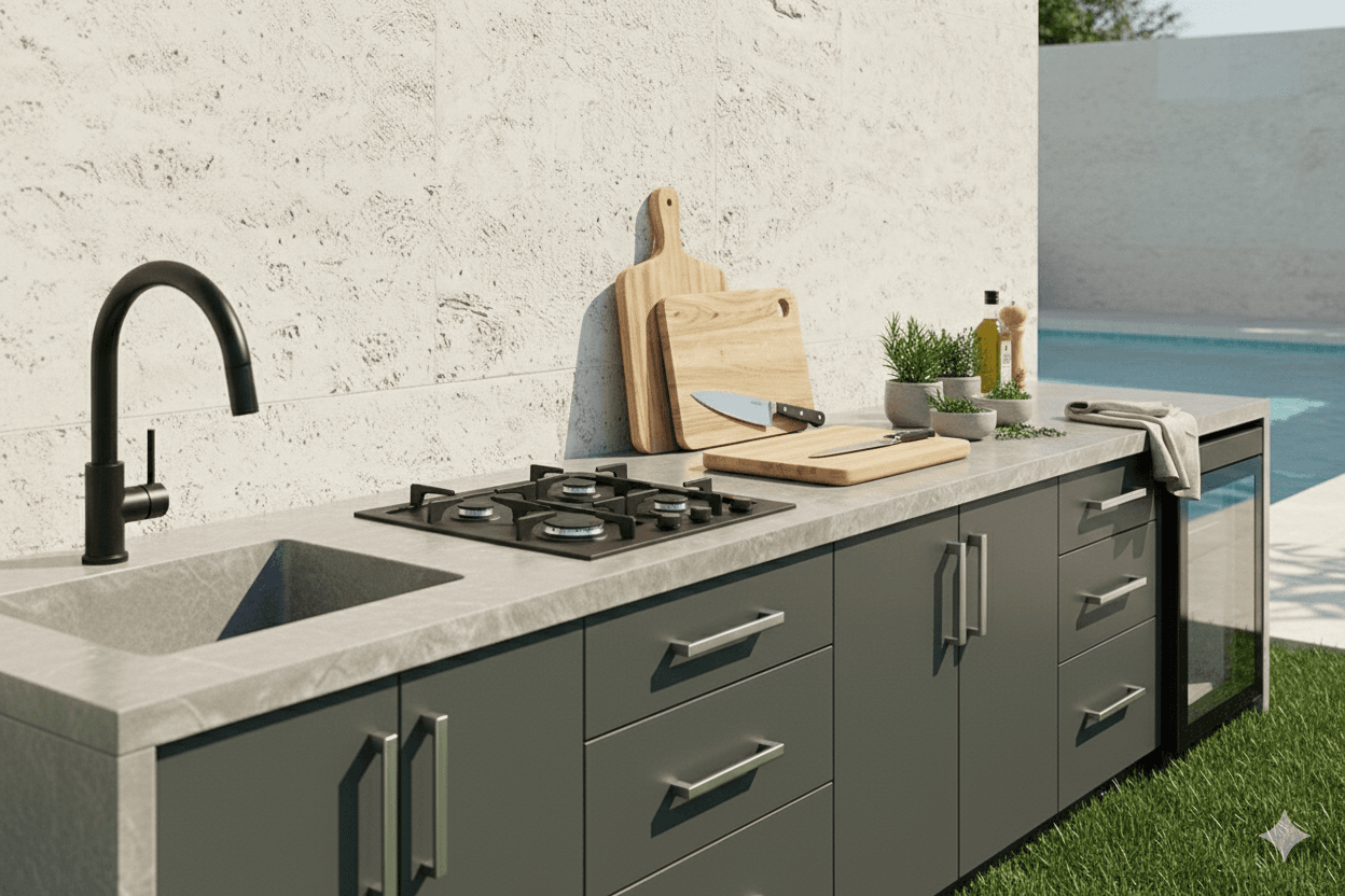 Mutfak kabininiz sadece bir ekipman değil, bahçenizin en şık mobilyasıdır. Serilerimizde sunduğumuz geniş renk paleti  seçenekleriyle, mutfağınızı dış mekan tasarımınıza tam uyumlu hale getirin.