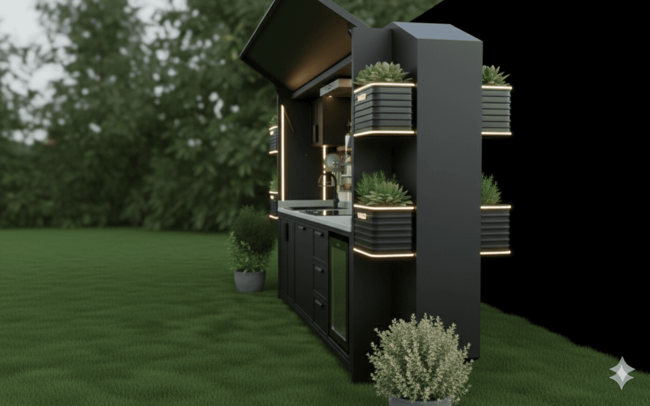 İç kısmına ekleyeceğiniz modülleri kendi tercihinize göre belirleyebilirsiniz. Dilerseniz vago ünitelerini seçerek mutfak kabinini tam bir sistem haline getirebilir ya da kendi belirlediğiniz ürünleri kullanarak daha özgün bir tasarım oluşturabilirsiniz. Bu esnek yapı, Nomad Garden V Kabin’i farklı kullanıcı ihtiyaçlarına hitap eden çok yönlü bir ürün haline getiriyor.