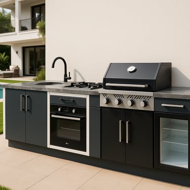 Doğayla uyumlu, modüler ve şık dış mekan mutfaklar tasarlıyoruz. Farklı ihtiyaçlara özel çözümlerimizle hem keyifli anlara hem de projelere eşlik ediyoruz. Üstelik ürünlerimiz suya, rüzgâra, kara ve yağmura karşı dayanıklı yapısıyla her mevsimde güvenle kullanılabiliyor.