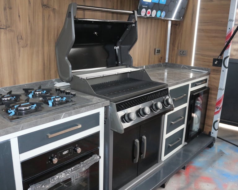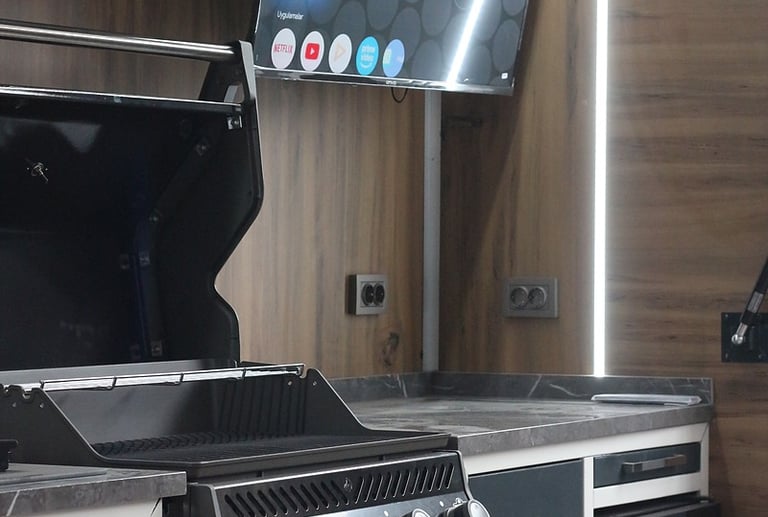Fonksiyonel Çözümler: Evye, barbekü veya depolama modülleriyle ihtiyaçlarınıza özel düzen.